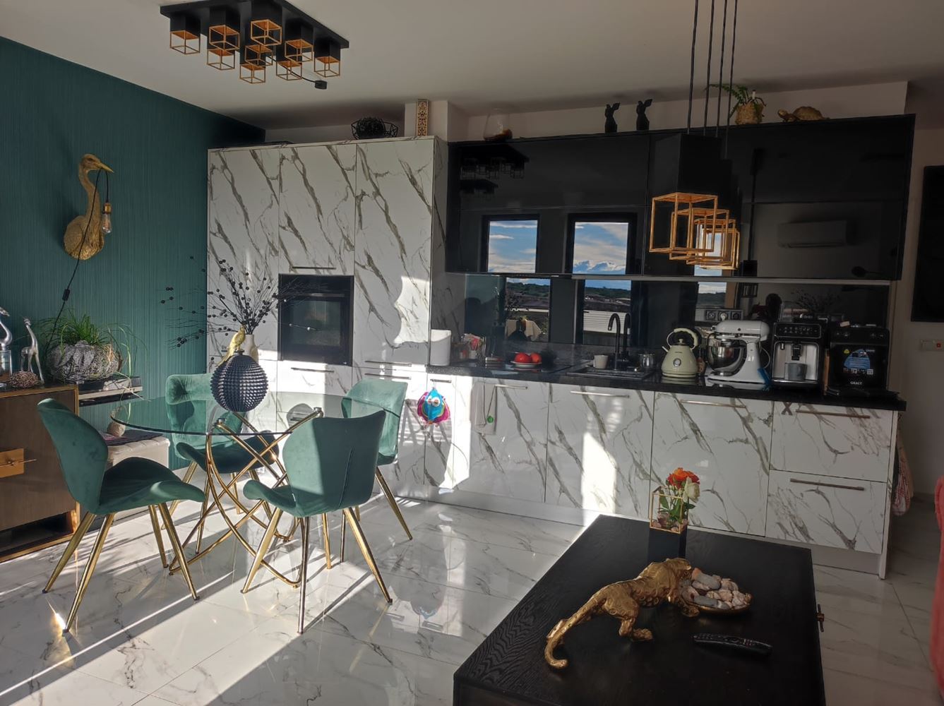 Жилището се отличава с функционално и просторно разпределение, което включва светла дневна зона с кухненски кът, две самостоятелни спални, две бани с тоалетни и голяма панорамна тераса, от която се разкрива красива гледка към морето. Просторът и естествената светлина създават усещане за свобода и уют, а терасата е перфектно място за отдих, сутрешно кафе или вечерни моменти с морския бриз и гледката към залива.