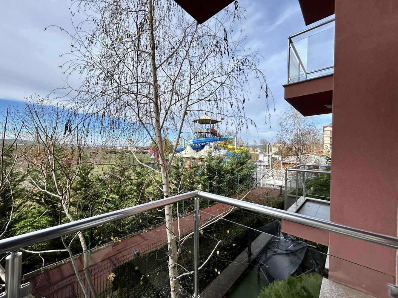 Комплексът разполага с два големи басейна за възрастни, единият от които с дължина 30 метра, както и два детски басейна, осигуряващи безопасно и забавно преживяване за най-малките. Допълнително удобство са детската площадка и анимационните програми, които гарантират усмивки и незабравими моменти за децата, докато родителите се наслаждават на заслужена почивка. За пълен комфорт е осигурен и удобен паркинг, което прави престоя и ежедневието в комплекса още по-лесни и безпроблемни. Това студио е отлична възможност за всеки, който търси качествен имот в Слънчев бряг, съчетаващ спокойствие, богата инфраструктура и висок инвестиционен потенциал.