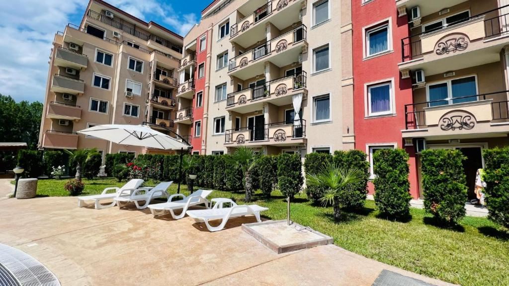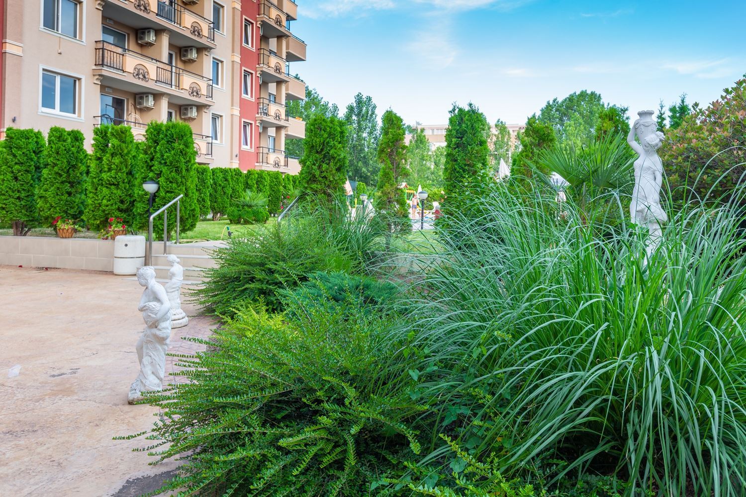 Комплексът е ситуиран в спокоен и изключително приятен район на курорта, сред много зеленина и красиво оформени алеи за разходка. Жителите разполагат с отлични удобства: просторен плувен басейн, зона за слънчеви бани и релакс, детска площадка и паркинг. Затворената територия, контролираният достъп и 24-часовата охрана гарантират сигурност и пълноценна почивка за вас и вашето семейство. Локацията осигурява тишина и уединение, като същевременно ви държи близо до пулса на курорта и всички негови сезонни удобства. Независимо дали търсите собствено място за бягство към морето, или надежден актив за отдаване под наем, този имот е балансиран избор с отлични перспективи.