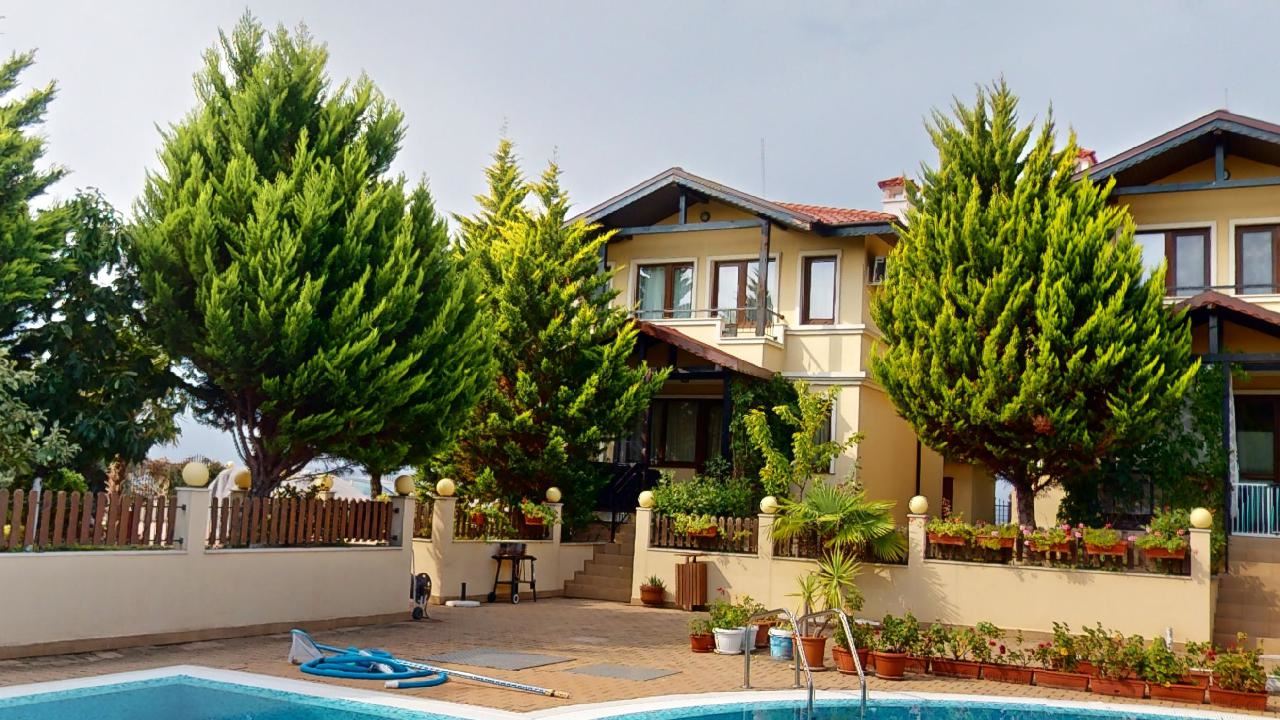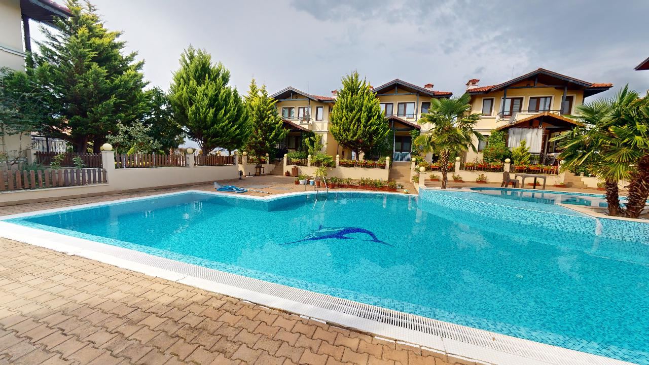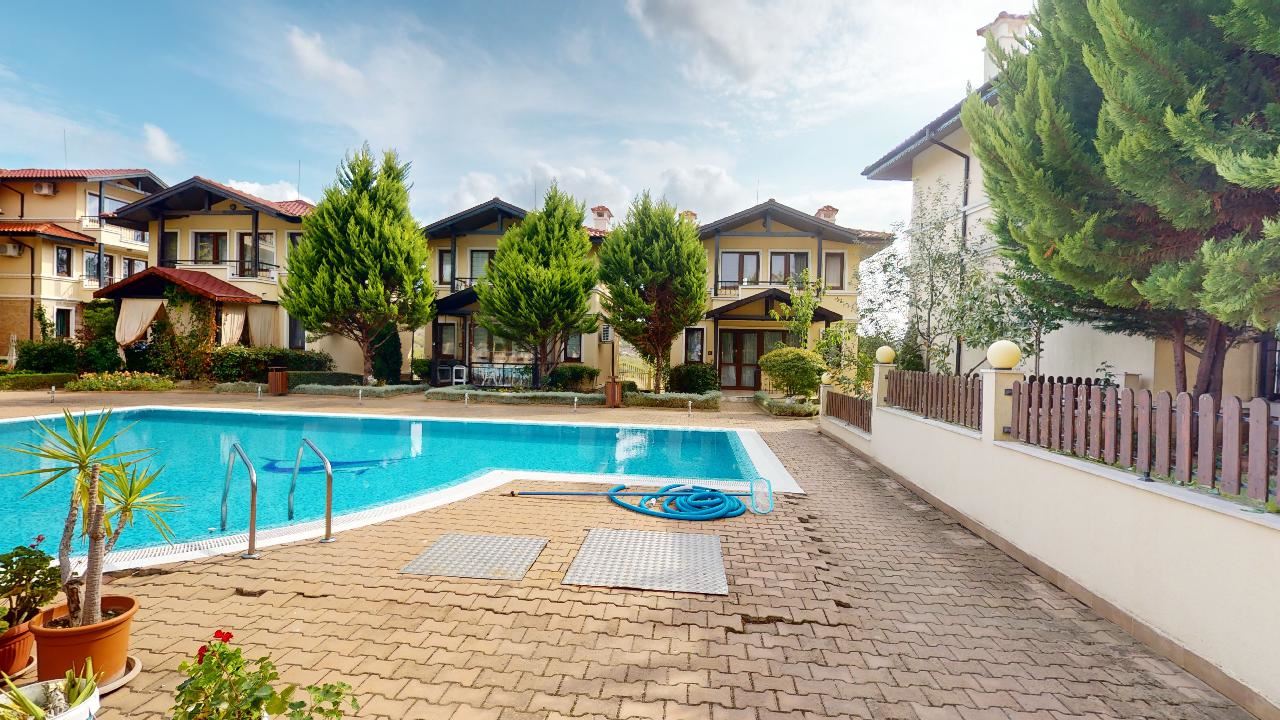 Триетажна къща в комплекс в покрайнините на Слънчев бряг включва редица атрактивни характеристики, които я правят идеална за комфортен и луксозен живот. Комплексът е разположен на южния склон на Стара планина. Оттук можете да се насладите на невероятна гледка към залива, крайбрежието и град Несебър. Този район е уникален със своя микроклимат, тъй като има смесица от планински и морски въздух, въздухът е винаги чист и свеж, а морският бриз носи прохлада. Къщата е напълно обзаведена и оборудвана с нови и модерни мебели и уреди, което осигурява високо ниво на комфорт и удобство. Наличието на отоплителна система прави тази къща обитаема през цялата година, като осигурява топлина и комфорт през студените месеци. От къщата се открива прекрасна гледка както към морето, така и към басейна, което създава атмосфера на релакс и лукс. Наличието на затворена тераса я превръща в идеално място за отдих на открито и прекарване на времето, включително за закуска и обяд. Две спални и три бани осигуряват комфортно пространство за живеене и посрещане на гости.