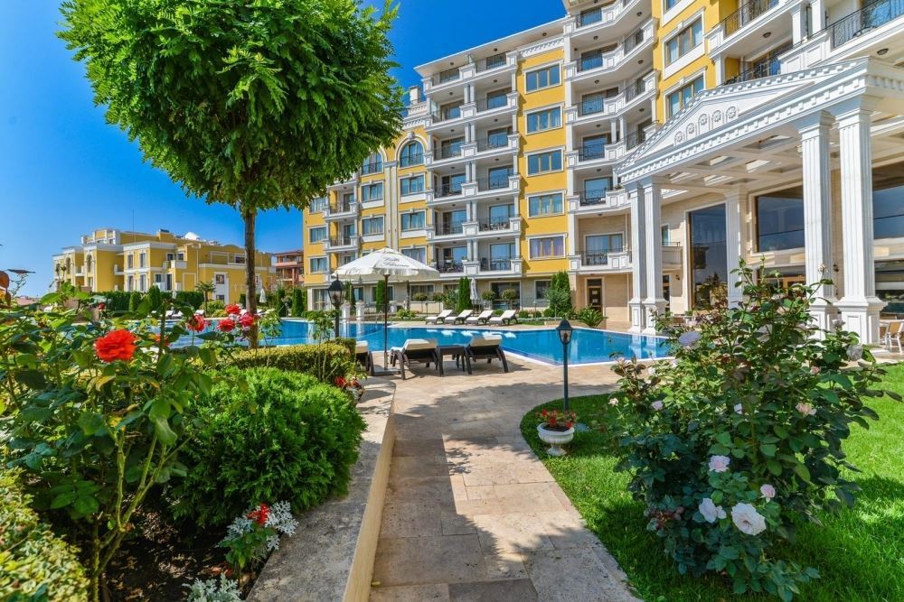 Паркирането е организирано удобно и сигурно: в комплекса има платен подземен паркинг с възможност за закупуване на паркомясто, както и безплатен частен паркинг на улицата. Достъпът до жилищата е лесен и комфортен благодарение на асансьора и широките общи части. Локацията е изключително привлекателна – само на около 15 мин от яхтеното пристанище „Марина Диневи“, сред една от най-предпочитаните зони на Свети Влас, известна с престижните си комплекси и отлично развита инфраструктура.
