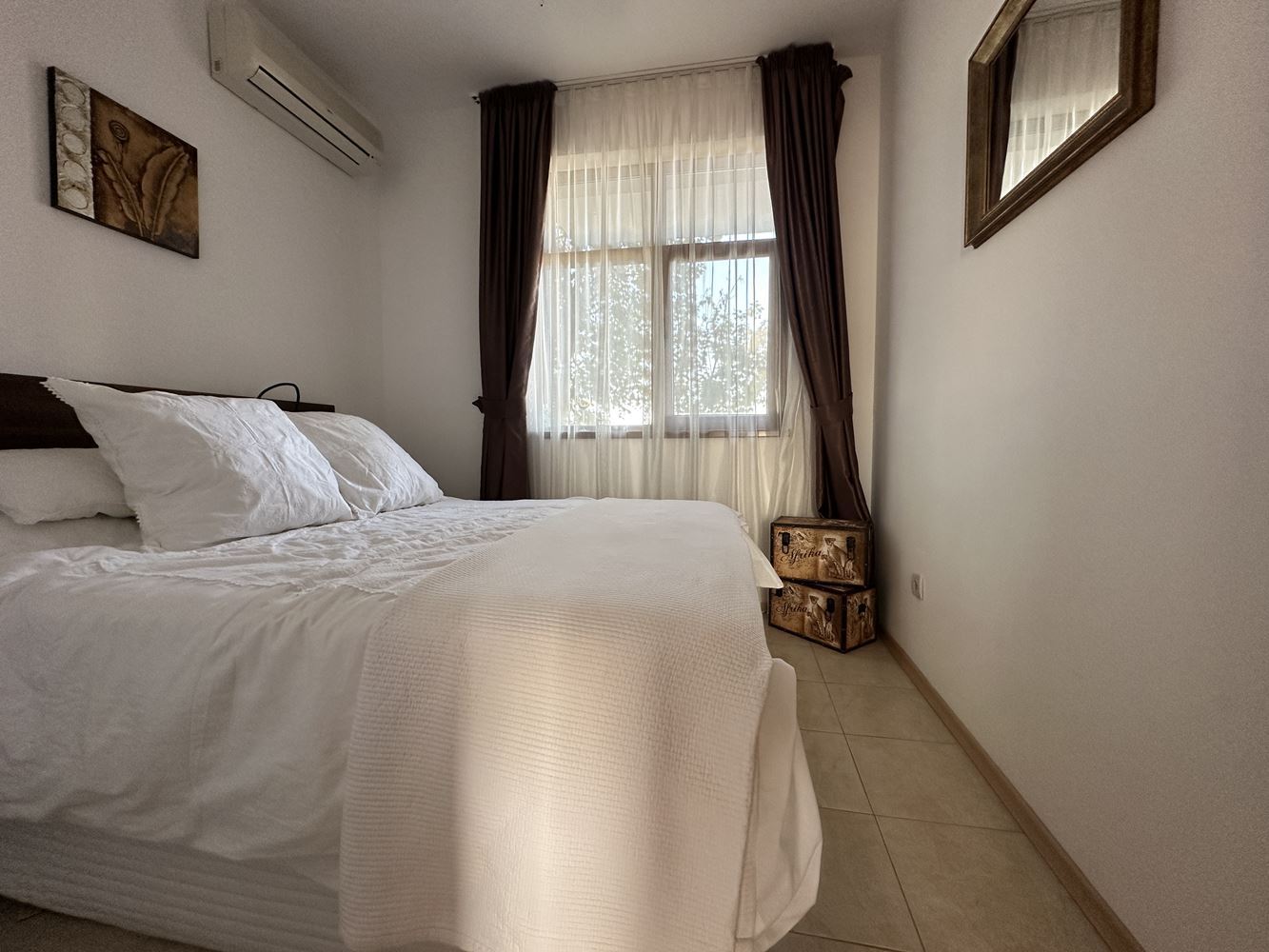Жилището е практично разпределено и създава усещане за комфорт и простор. Състои се от коридор, две спални, баня с тоалетна, както и светъл и просторен хол с кът за хранене и кухненски бокс. От дневната зона има излаз към тераса, от която се разкрива прекрасна гледка към басейна – идеално място за сутрешно кафе или спокойна вечер на открито.