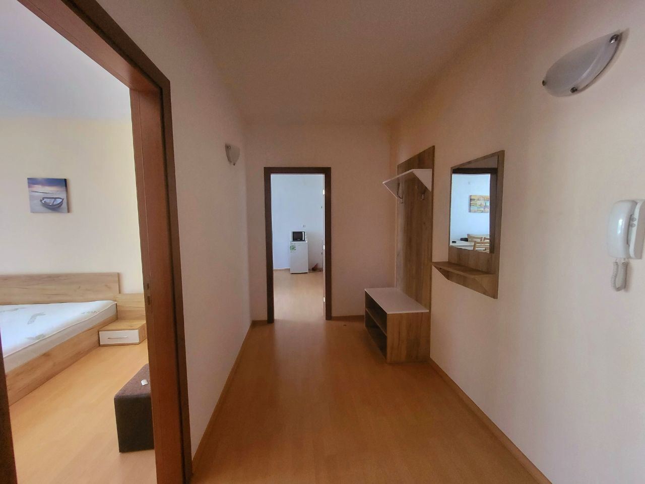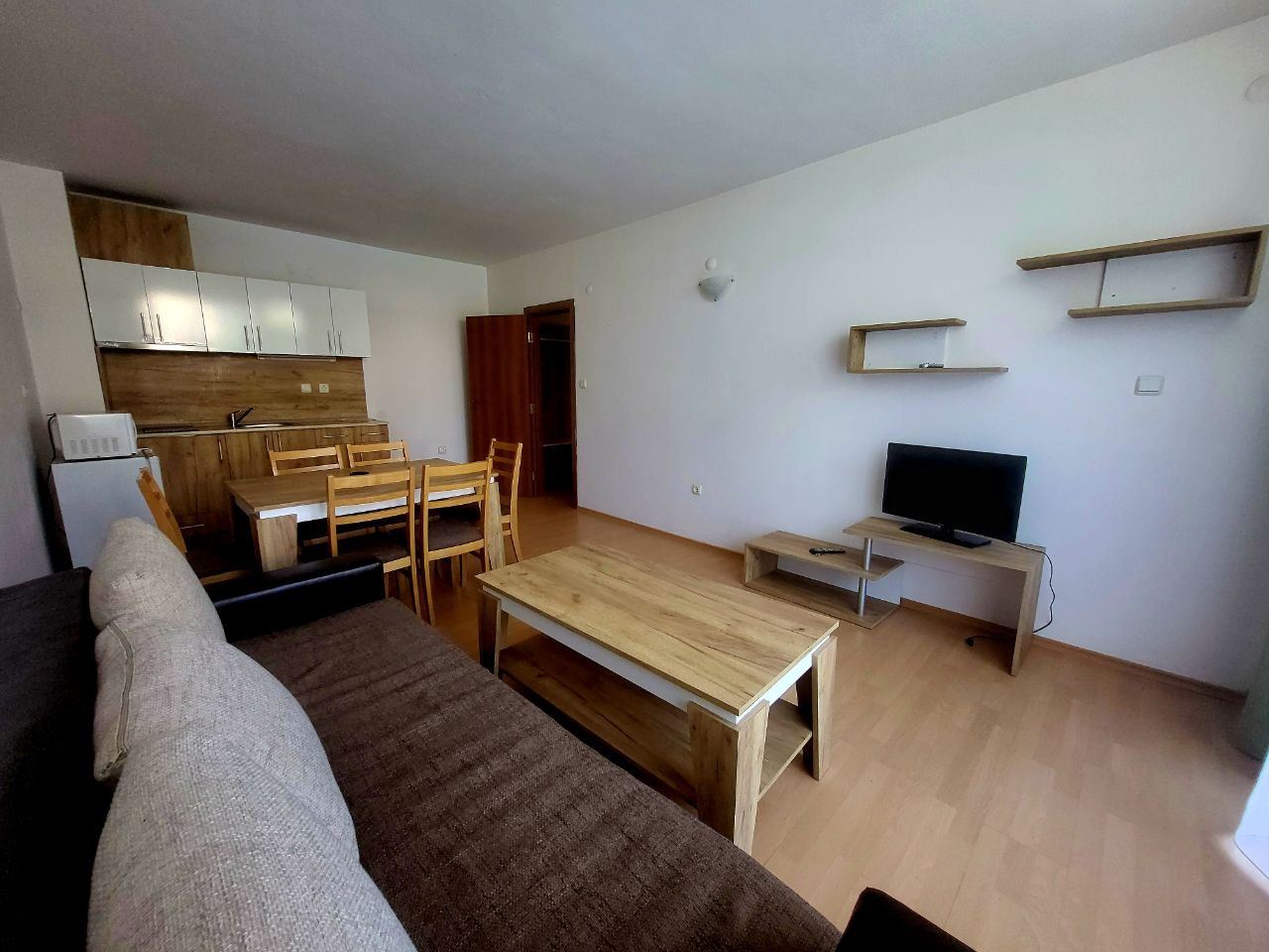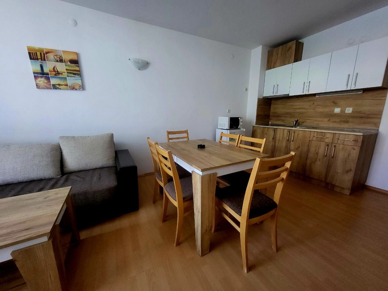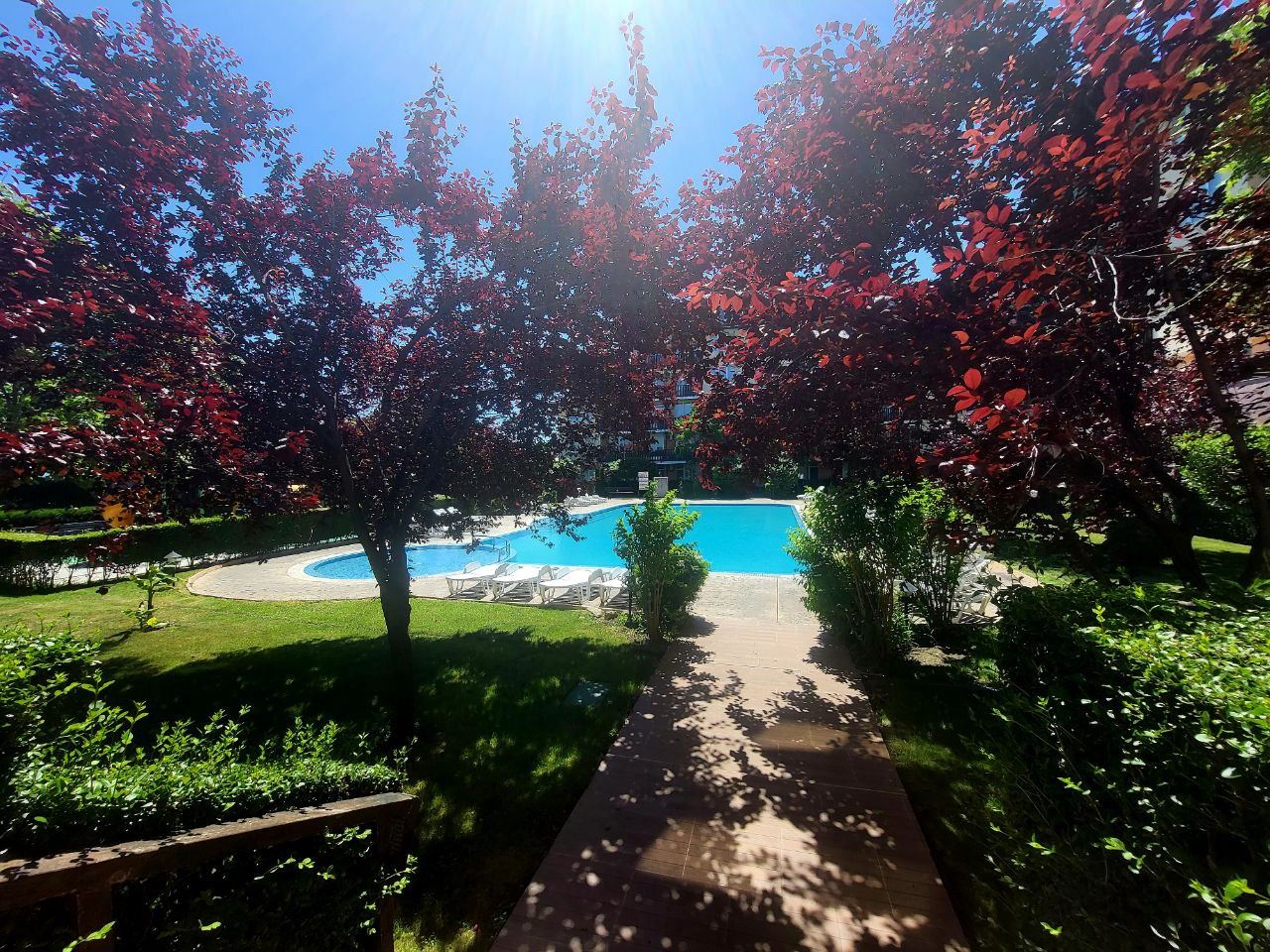 Тристаен апартамент с гледка басейн в комплекс в град Ахелой. Апартаментът е с площ 99,38 кв. м. на втори етаж и се състои от дневна с кухненски бокс, две спални, баня с тоалетна и тераса. Продава се напълно обзаведен. Удобства: басейн, бар при басейна, детски басейн, озеленени площи, детска площадка, джакузи, фитнес център, ресторант, супермаркет рецепция, охрана и други удобства.