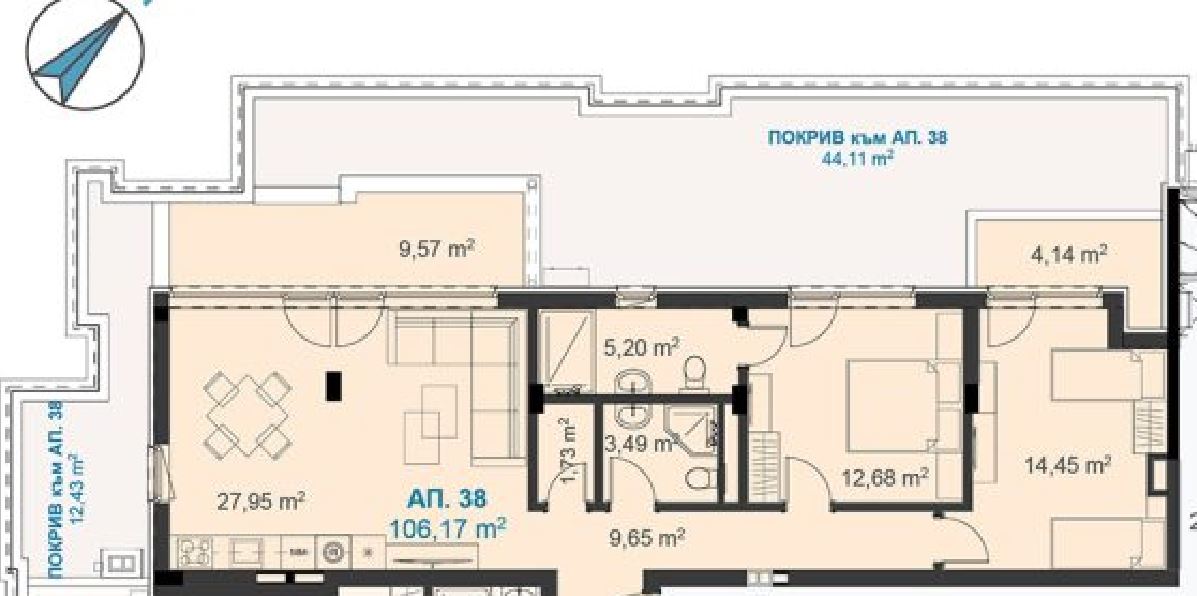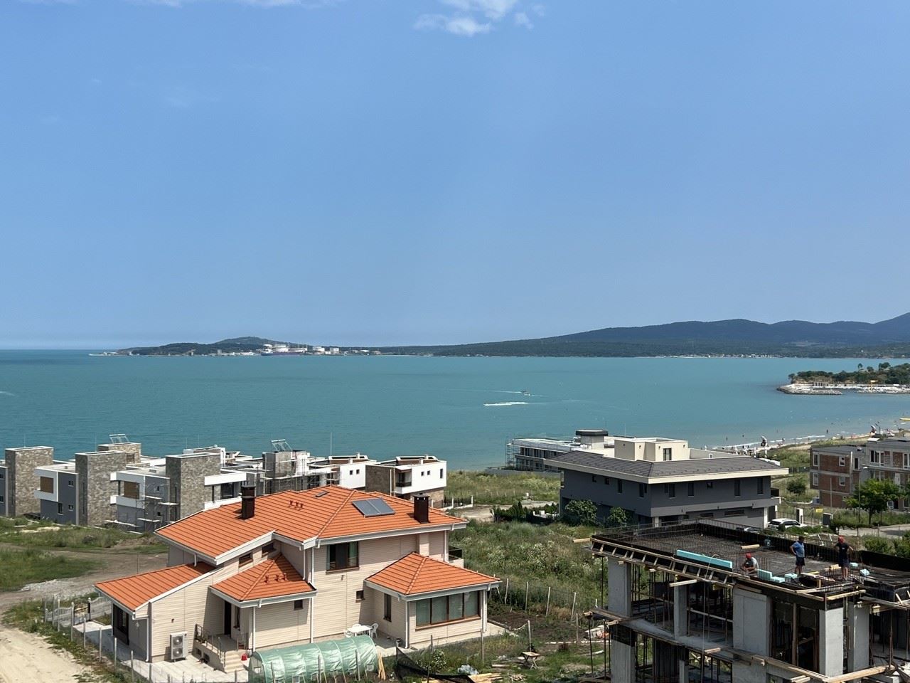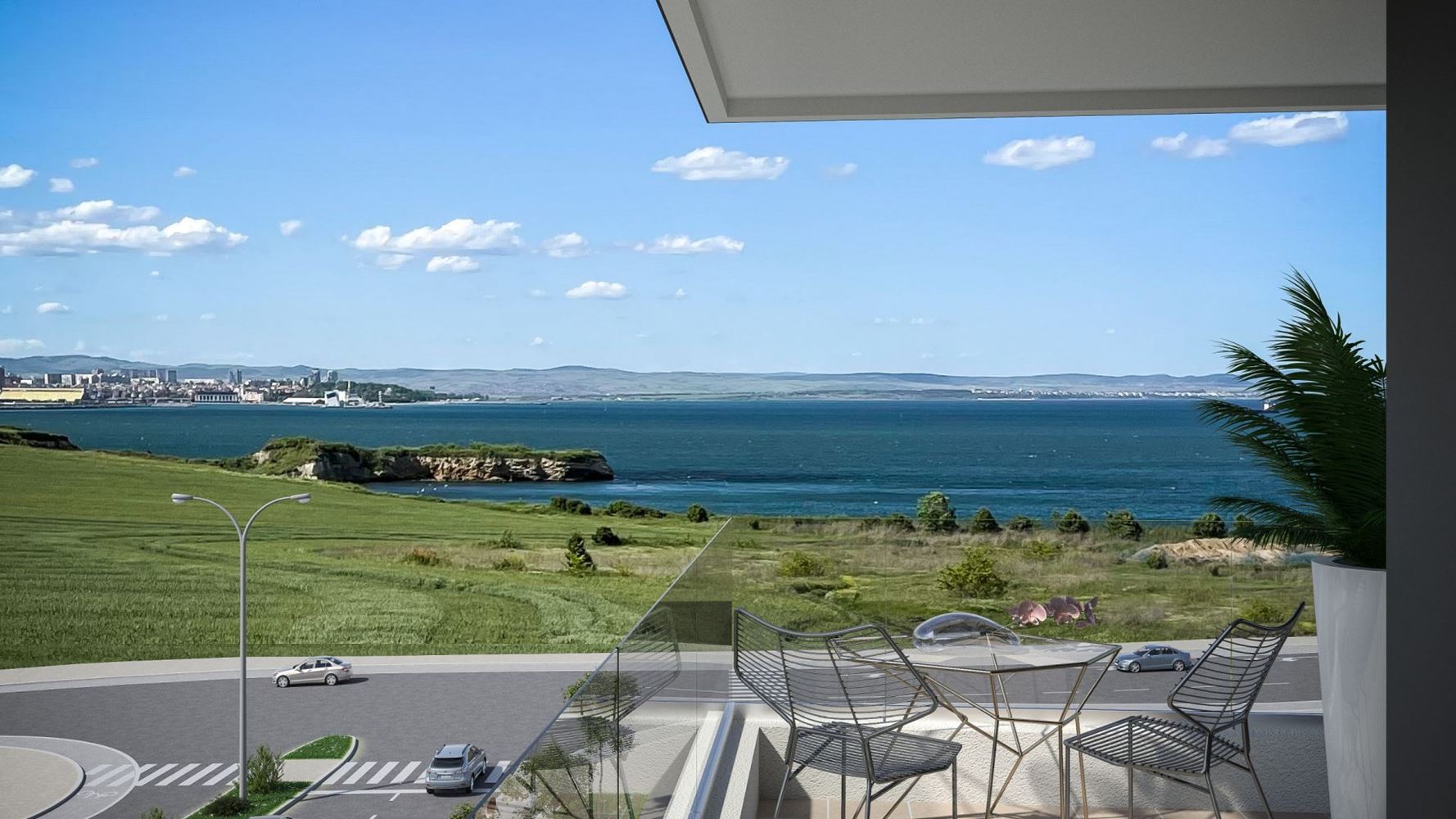 Тристаен апартамент с гледка море в нова жилищна сграда на 100 метра от морето в кв. Крайморие, гр. Бургас. Апартаментът е с площ 158,35 кв. м. на пети етаж и се състои от антре, хол с кухня, две спални, две бани с WC, килер и две тераси. Основни предимства на сградата са нейното разположение – на североизток граничи с булевард с ширина 34 метра, на югозапад с комплекс от еднофамилни къщи, отстоящи на 20 метра, на югоизток – улица с кръгово и пешеходен достъп до булеварда.