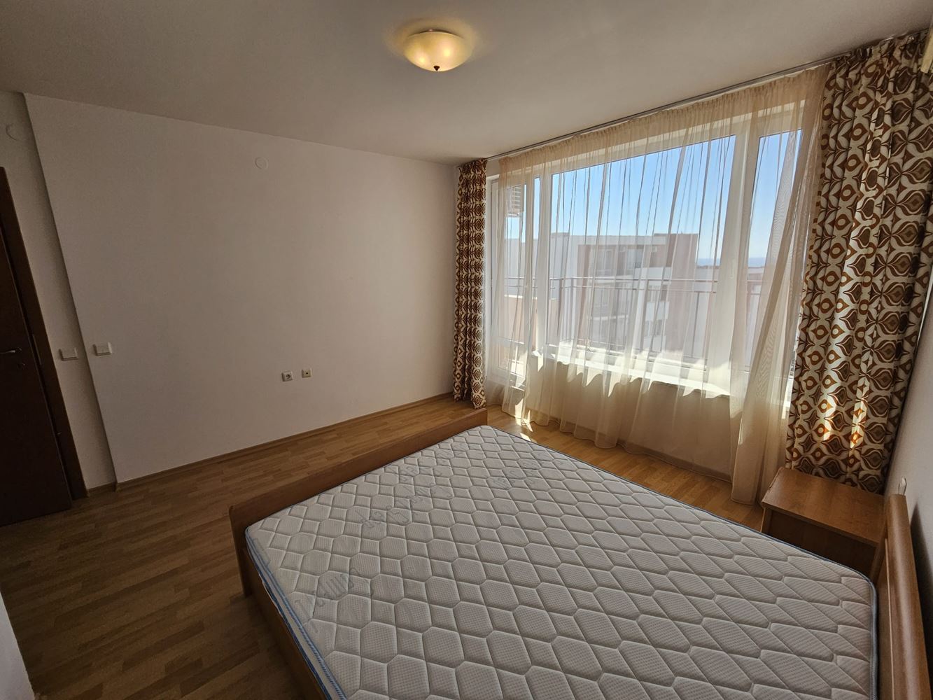 Представяме ви изключителен тристаен апартамент с панорамна гледка към морето, разположен в красивия курорт Свети Влас. С обща площ от 105 м2, този впечатляващ имот се намира на шести етаж в модерен комплекс, предлагайки съвременен комфорт и високи стандарти на живот. Апартаментът разполага с просторна дневна, съчетана с напълно оборудвана кухня - идеалното място за създаване на уютни спомени със семейството и приятелите. Двете светли спални са с удобно разпределение и са перфектни за отдих и релаксация. На разположение на бъдещите собственици са две модерно обзаведени бани с WC, осигуряващи комфорт и функционалност. Едно от предимствата на този апартамент е просторната тераса, която предлага спираща дъха гледка към синьото море - идеалното място за сутрешното кафе или вечерните моменти на отдих. Асансьорът в сградата осигурява допълнително удобство за лесен достъп до жилището. Апартаментът се продава напълно обзаведен и е готов за нанасяне, като мебелите и уредите са с високо качество и стилен дизайн.