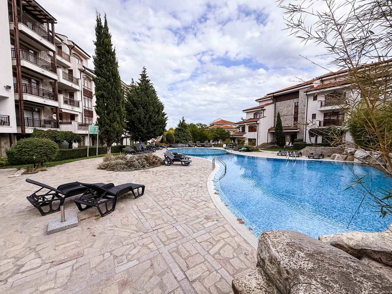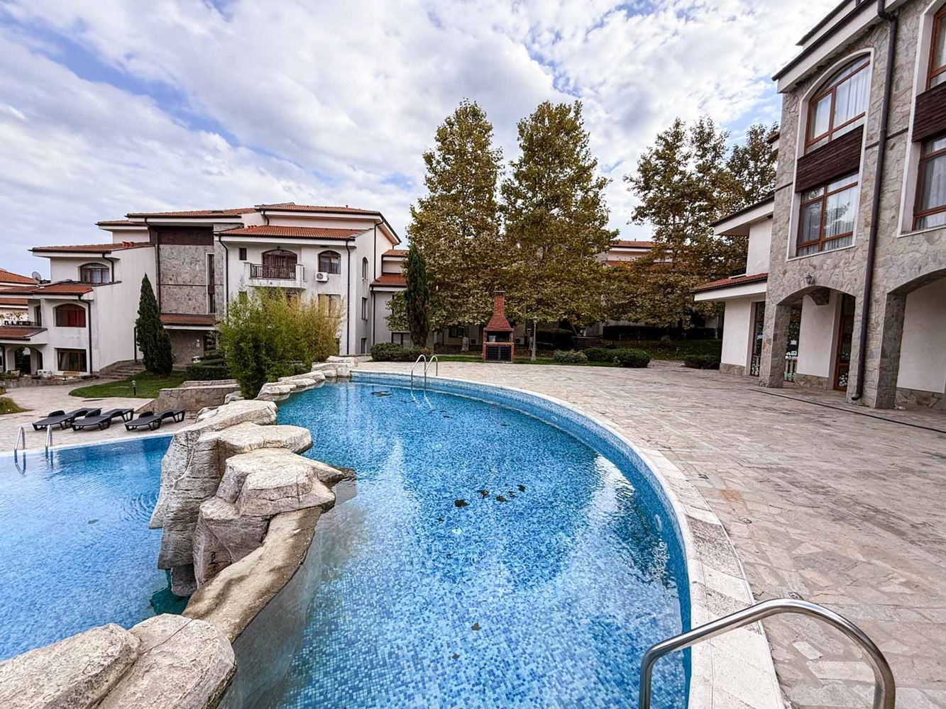 Комплексът впечатлява с изискана архитектура, вдъхновена от българската възрожденска традиция – червени керемиди, дървени обшивки и каменна облицовка придават неповторим характер и уют. Обитателите разполагат с разнообразни удобства: съоръжения за спорт, заведения за хранене и развлечение, както и няколко плувни басейна за релакс през топлите дни. Наличието на асансьор допълва усещането за комфорт и удобство в ежедневието. Местоположението съчетава тишина и близост до природата с удобен достъп до по-големи градове и ключови точки по Черноморието. Ахелой предлага спокойна среда за живот, а Бургас, Несебър и Поморие са на удобно разстояние за работа, образование, здравни услуги и разнообразни развлечения. Така получавате най-доброто от двата свята – уединение без компромис с удобствата.