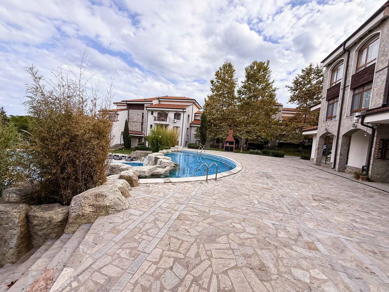 Тристаен на партер с изключителен собствен двор в Ахелой – стил, простор и удобства в комплекс с възрожденска архитектура