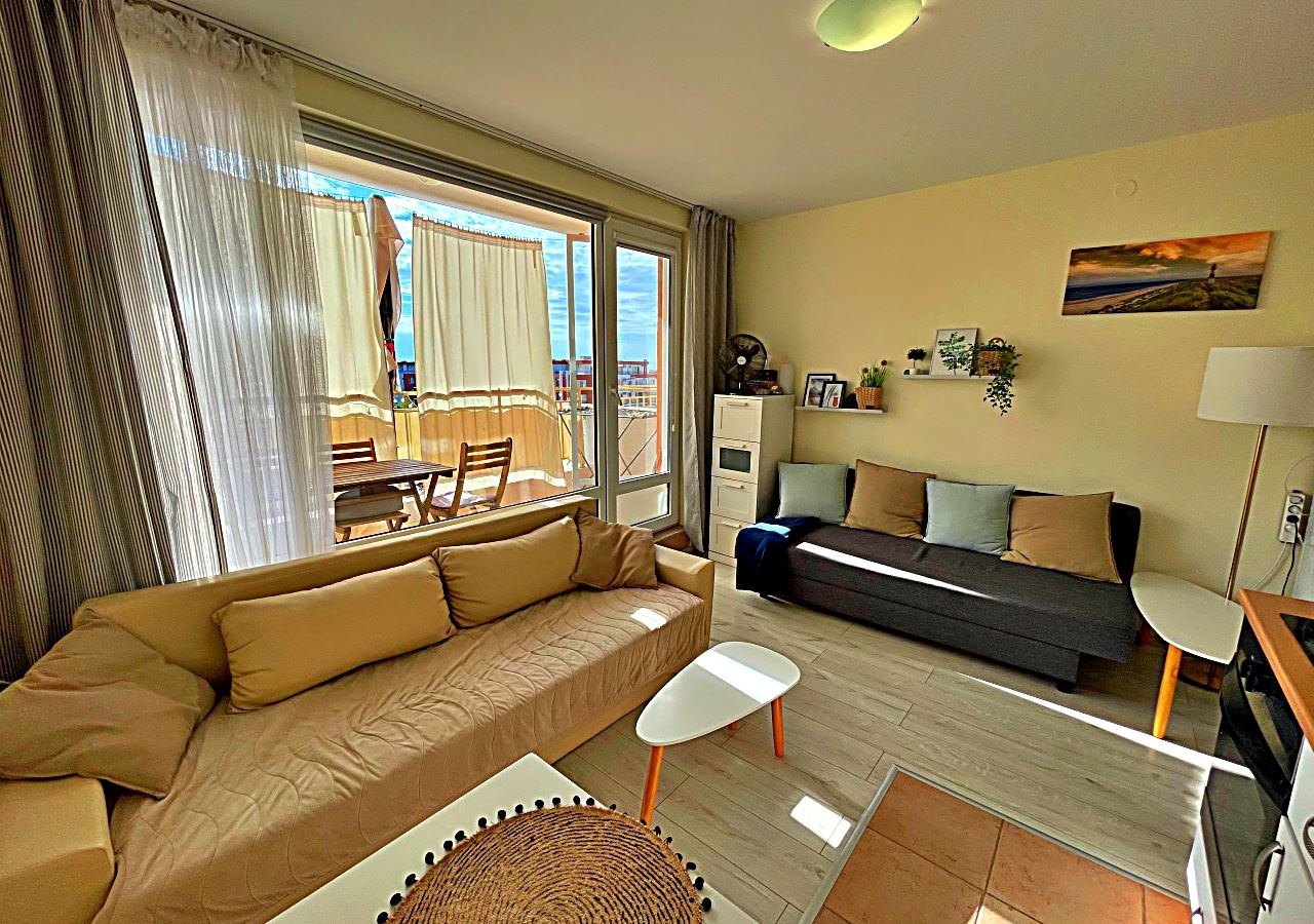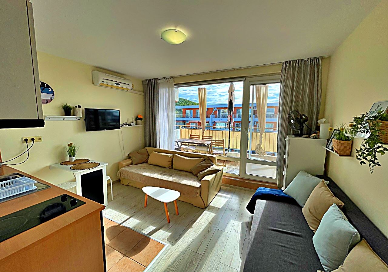 Продава се светло и уютно студио с прекрасна гледка в Свети Влас! Това съвременно студио с площ от 36 м2 е идеалното място за вашето морско приключение или инвестиция. Разположено на пети етаж в модерен комплекс с асансьор, имотът предлага всички необходими удобства за комфортно пребиваване. Студиото разполага със светла и просторна стая, която комбинира функционален кухненски кът и зона за отдих. От балкона се разкрива спираща дъха гледка, подходяща за утринно кафе или романтични вечери. Банята е модерно обзаведена, предоставяйки всичко необходимо за вашето удобство.