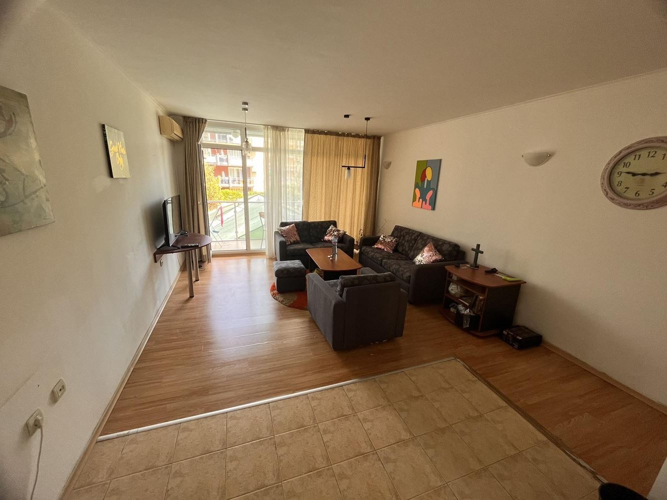 Просторен двустаен апартамент в живописен комплекс на Слънчев бряг предлага страхотна комбинация от комфорт и уют. Комплексът се намира на 10 минути пеша от красивия плаж, което го прави идеален избор за ценители на близостта до морето. Апартаментът е с площ от 96 м2 и се намира на втория етаж. Голяма тераса ще зарадва свои обитатели с много възможности.