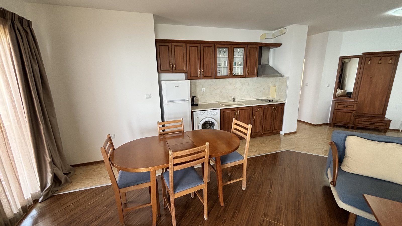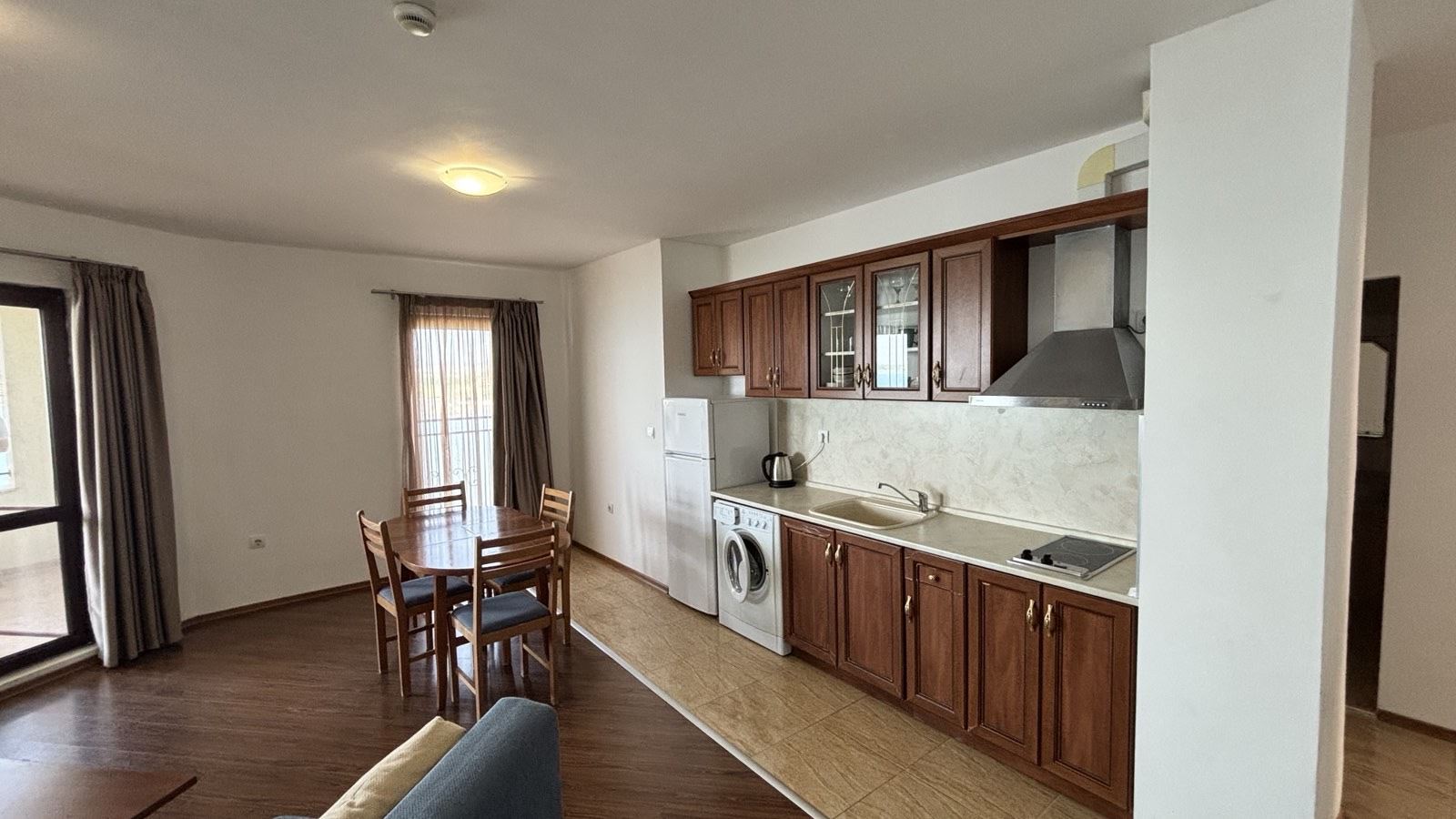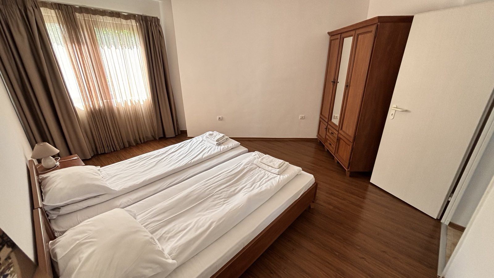 Жилището е обзаведено с внимание към детайла, което го прави готово за незабавно нанасяне. Удобствата не спират до тук - комплексът предлага охраняема територия, плувни басейни за разхлаждащите летни дни, детски площадки за игра, както и спа и фитнес център за релаксация и активен начин на живот. Обширните паркови площи и алеите за разходка осигуряват идеални условия за отдих на открито и създават приятна атмосфера за вашите разходки.