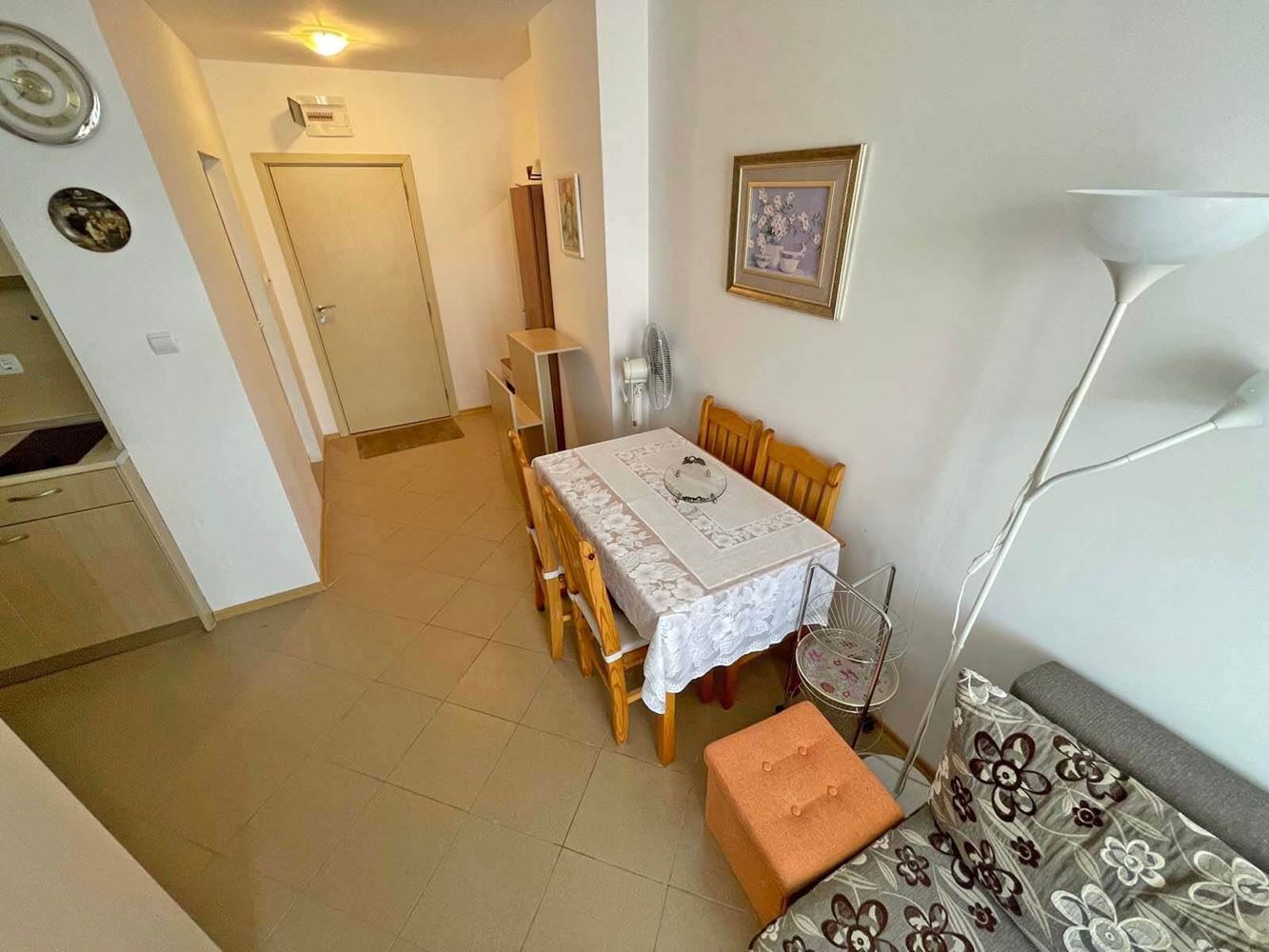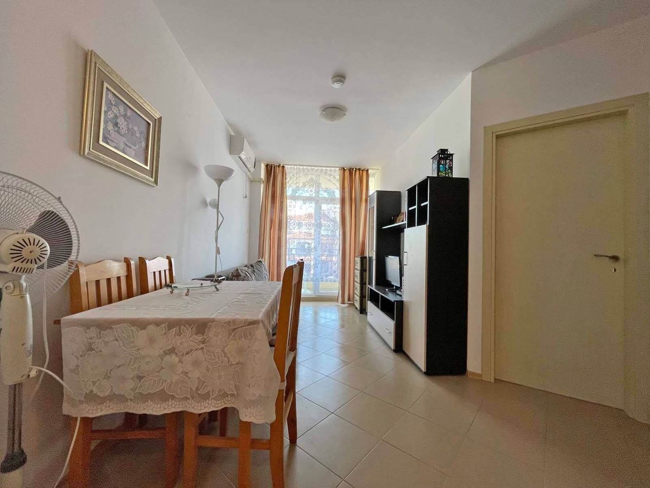 Този уютен двустаен апартамент в курорта Слънчев бряг предлага отлични условия за отдих и живот. Ето някои от характеристиките на този имот: намира се в западната част на курорта Слънчев бряг, само на 400 метра от плажа. Това удобно местоположение ви позволява лесно да стигнете до плажа и да се насладите на морската си почивка. Жилищният комплекс предлага богата инфраструктура, включваща плувни басейни за възрастни и деца, барове край басейна, ресторант, детска площадка, тенис корт, фитнес клуб и други удобства. Това създава комфортна и разнообразна среда за жителите. В близост до комплекса има супермаркети, кафенета, бистра, аптека и други магазини и заведения, които осигуряват достъп до всички необходими удобства. Жилището е оборудвано с удобна тераса, където можете да прекарвате времето си на чист въздух и да се наслаждавате на гледката към града и заобикалящата го природа. Комплексът осигурява охрана и безопасност за обитателите, което дава допълнително спокойствие.