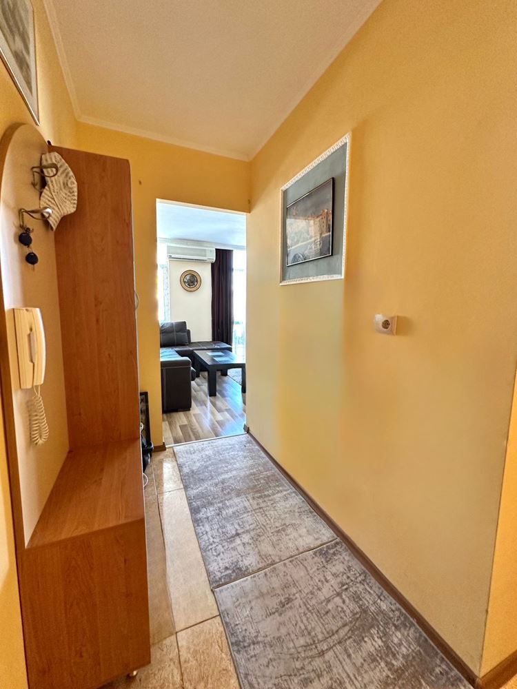 Апартаментът се състои от функционално входно антре, просторна дневна с кухненски кът, уютна спалня, отделна тоалетна, баня с тоалетна и приятна тераса. Пространството е добре разпределено и създава усещане за простор и светлина. Продава се напълно обзаведен и оборудван – с качествени мебели и електроуреди, което го прави напълно готов за нанасяне или незабавно отдаване под наем. Имотът разполага с Акт 16, което е гаранция за законност и завършено строителство. Благодарение на удобствата, отличната локация и готовото обзавеждане, този апартамент е чудесен избор както за целогодишно живеене, така и за инвестиция с висок потенциал за доходност.