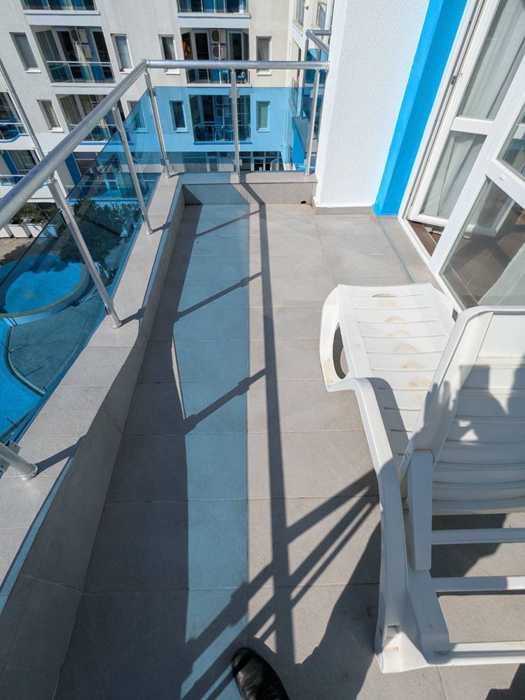 Апартаментът е с площ от 69 м² и се намира на четвърти етаж от четириетажна сграда. Жилището е с качествен и модерен ремонт, което създава приятна и уютна атмосфера. Разпределението е функционално и удобно – светла дневна с кухненска зона, просторна спалня, баня с тоалетна и тераса, от която се разкрива частична гледка към морето, придаваща допълнителен чар на имота.