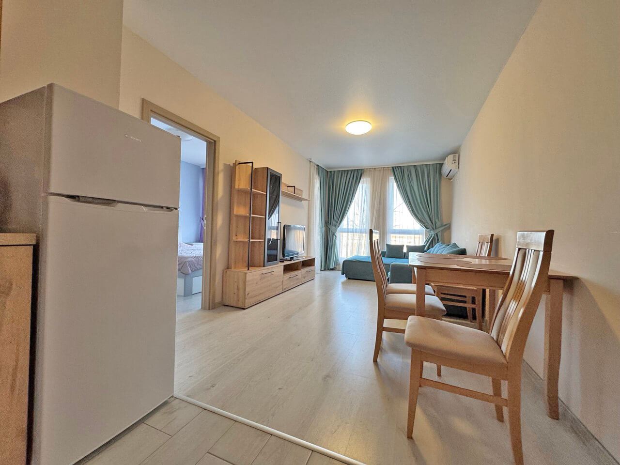 Предлагаме за продажба напълно обзаведен двустаен апартамент с площ от 47 м2, разположен на втори етаж в добре поддържан мини курорт, съчетаващ комфорт, тишина и близост до природата. Имотът е отличен избор както за ваканционно ползване, така и за целогодишно живеене или инвестиция с цел отдаване под наем. Апартаментът е функционално разпределен и предлага уютна атмосфера, готова за незабавно нанасяне. Дневната зона е светла и приветлива, обзаведена с всичко необходимо за комфортен престой, а спалнята осигурява спокойствие и удобство. Жилището се продава изцяло обзаведено, което спестява време и допълнителни разходи на бъдещите собственици.