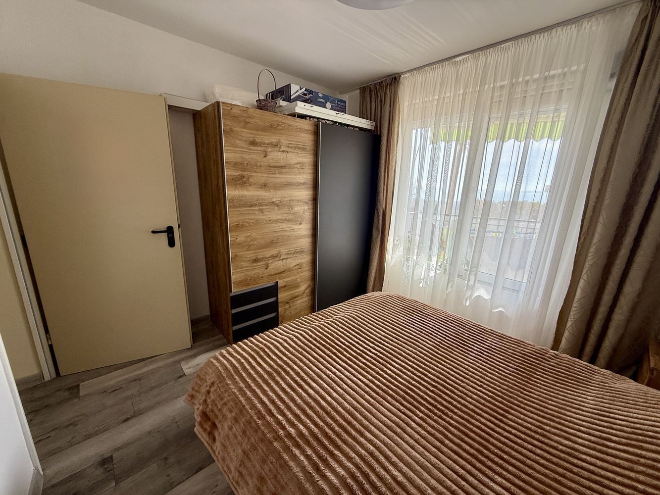 Апартаментът е обзаведен с внимание към детайла, създавайки уютна и функционална атмосфера. Жилището включва дневна с кухненски бокс, спалня, баня с тоалетна и тераса с барбекю и малък двор, което осигурява възможност за релакс на открито и семейни събирания. Южното изложение гарантира оптимално количество слънчева светлина през целия ден, създавайки топла и приветлива атмосфера.