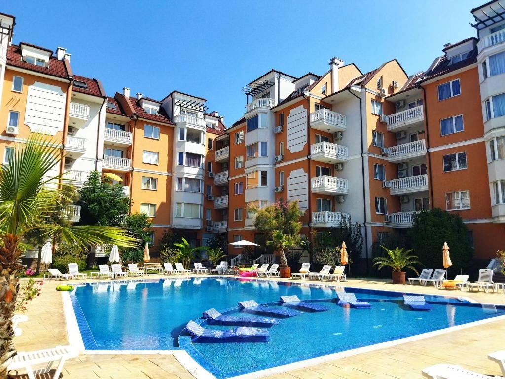 Комплексът, в който се намира имотът, разполага с отлична инфраструктура и разнообразни удобства за отдих и релакс. На разположение на собствениците и гостите са голям открит плувен басейн, детски басейн за най-малките, както и атрактивен воден бар, който създава приятна курортна атмосфера през горещите летни дни. За допълнително удобство в комплекса има денонощен магазин за хранителни стоки, осигуряващ всичко необходимо за ежедневието без нужда от пътуване.