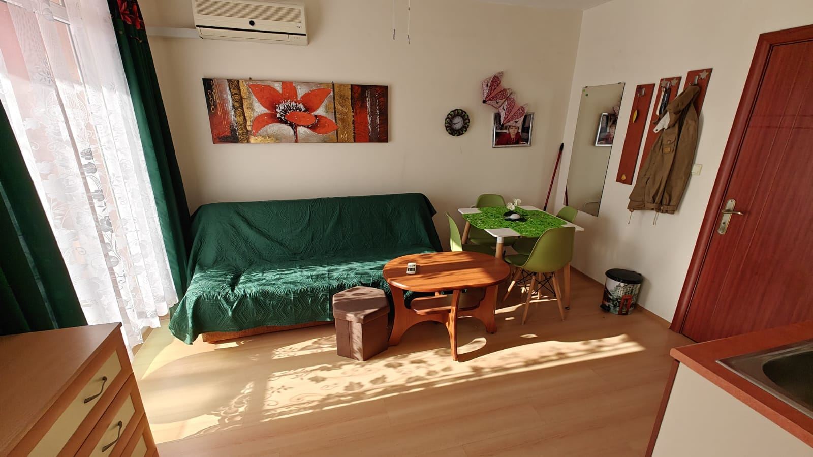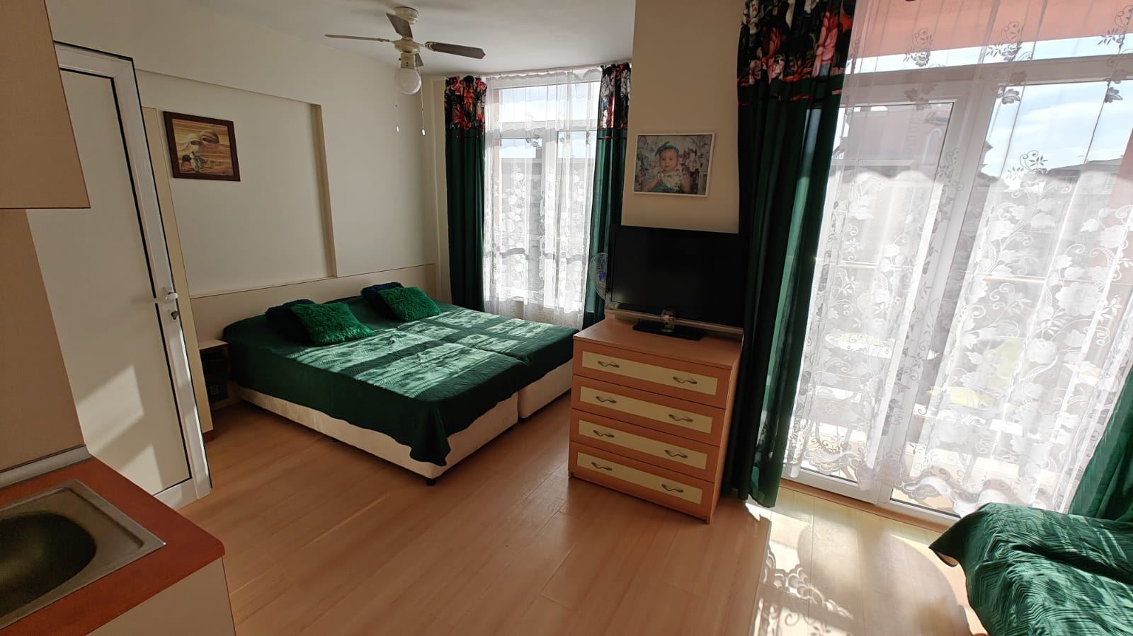 Продава се уютно жилище в к.к. Слънчев бряг, с възможност за преустройство в двустаен апартамент. Това е идеалното място за почивка и инвестиция в един от най-предпочитаните курорти на българското Черноморие. Апартаментът е с обща площ от 38 м2 и предлага функционално разпределение. Състои се от просторна стая, която може да бъде преобразена в дневна зона с кухненски бокс и отделна спалня. Разполага със собствен балкон, идеален за сутрешно кафе с изглед към околността, и баня с всички необходими удобства. Жилището се намира в сграда с асансьор, което осигурява лесен достъп и комфорт.